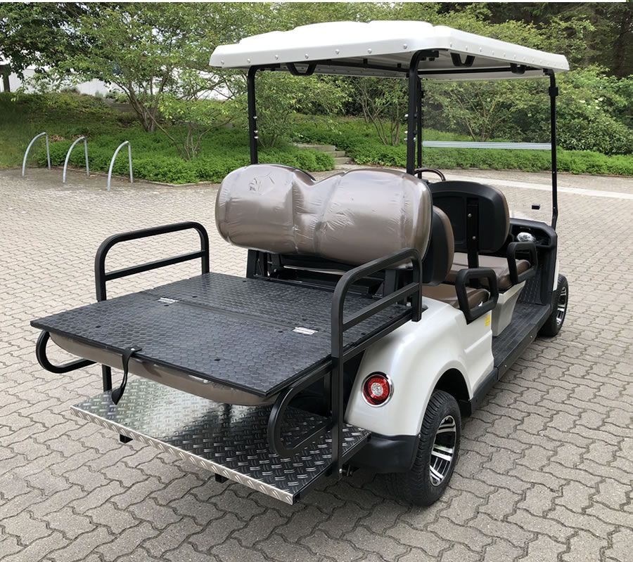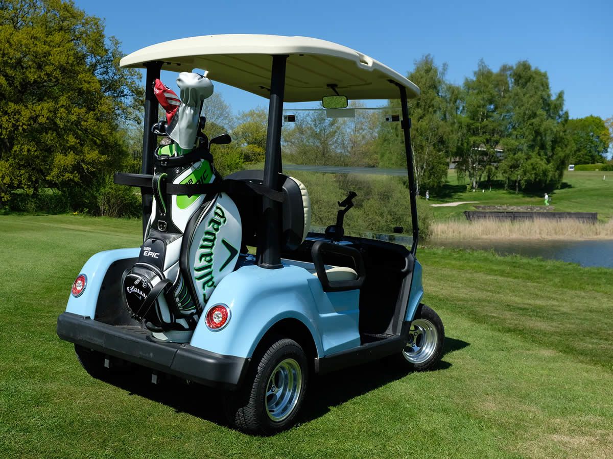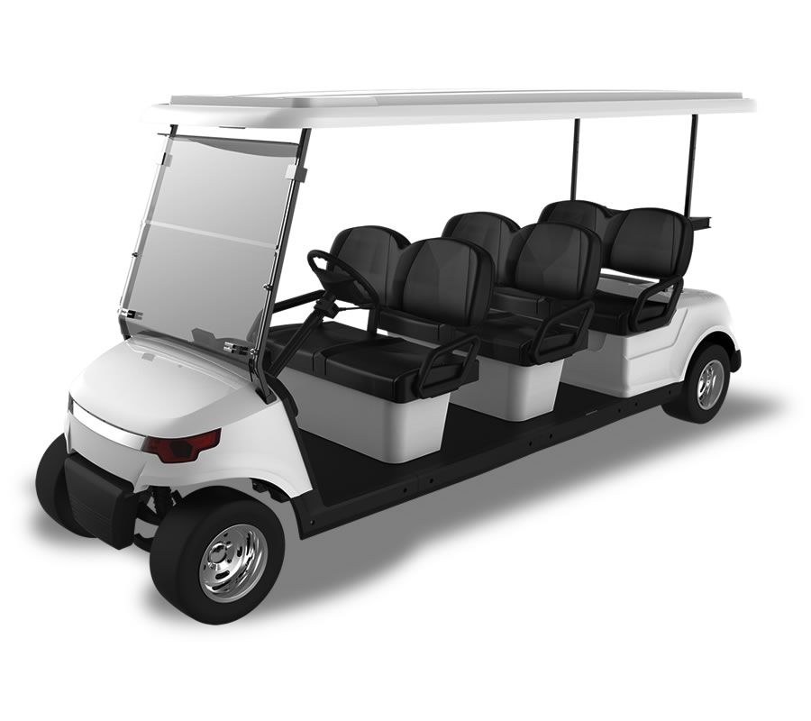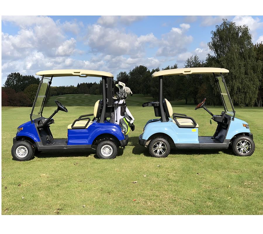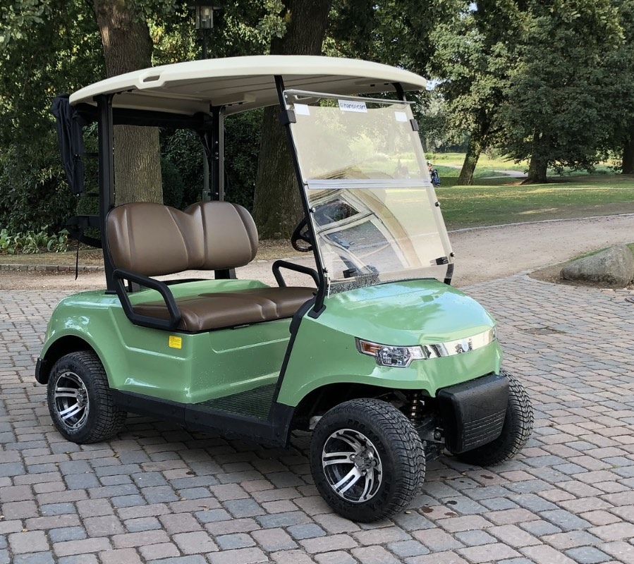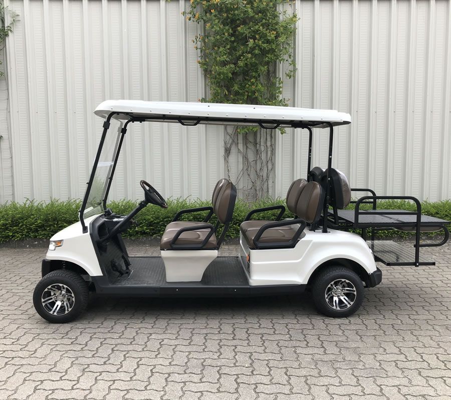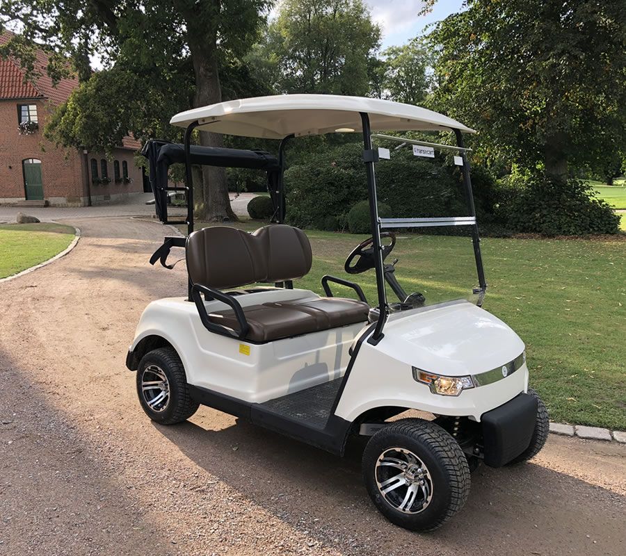 Elektrisch angetriebenes Golf Cart mit einer Antriebsleistung elektrisch von 3KW bis 5KW und einer Stromversorgung von 48 Volt. Das Fahrzeug wird gebremst mit selbsteinstellenden Trommel – Bremsen. Die Höchstgeschwindigkeit liegt bei 25 km/h mit einer Reichweite bis zu 100 km.