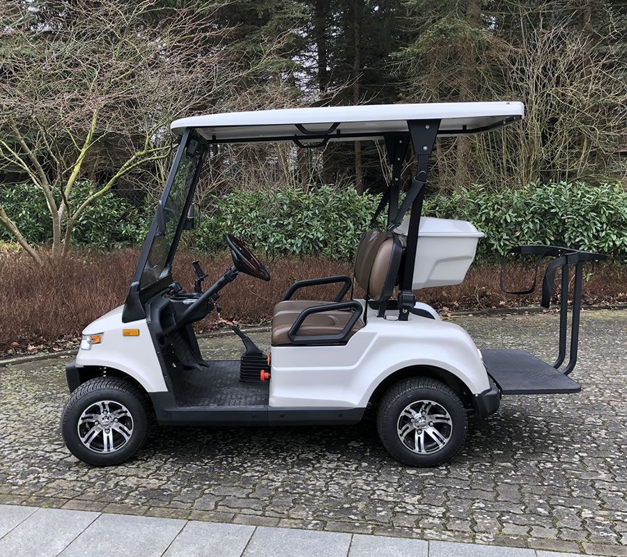 Electrically driven cart with an electric drive power of 4KW and a power supply of 48 volts. The vehicle is braked with hydraulic brakes. The top speed is up to 45 km / h with a range of up to 80 km.